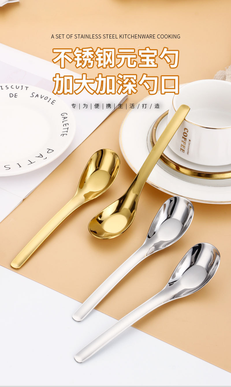 trade point factory direct sales md-s005 stainless steel spoon home ladle spoon baby food spoon ingot spoon中文版
