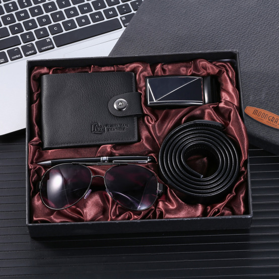 贸点工厂直营MD-A07377 男士时尚潮流精美礼品套装紫色镜片眼镜+皮带+笔+个性钱包