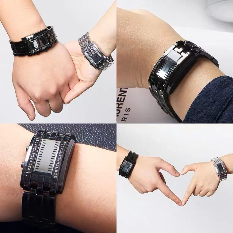 Crossed price: refers to the price of goods under the scenario of merchants' self-marketing activities, which does not include various preferential activities of the platform. May be the sales guide price of the product or the sale price of the product has been displayed, etc., not the original price, for reference only.贸点工厂直营MD-A09424 韩版潮流LED钢铁侠双线二进制时尚学生情侣个性电子手表
